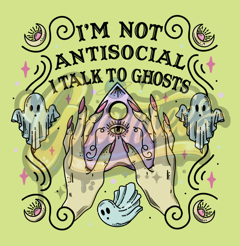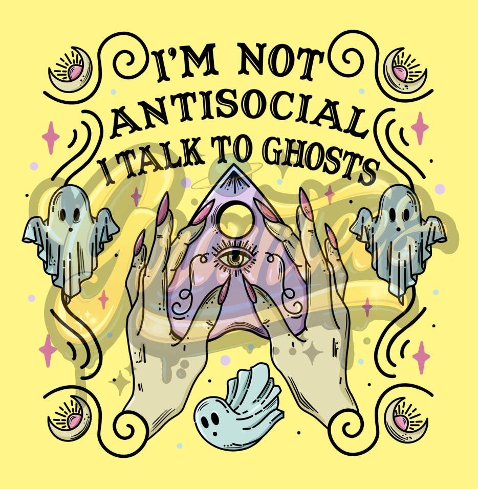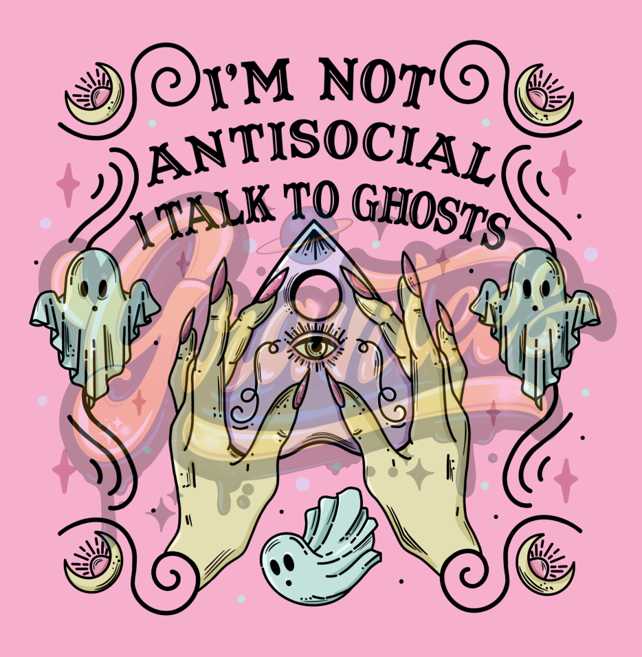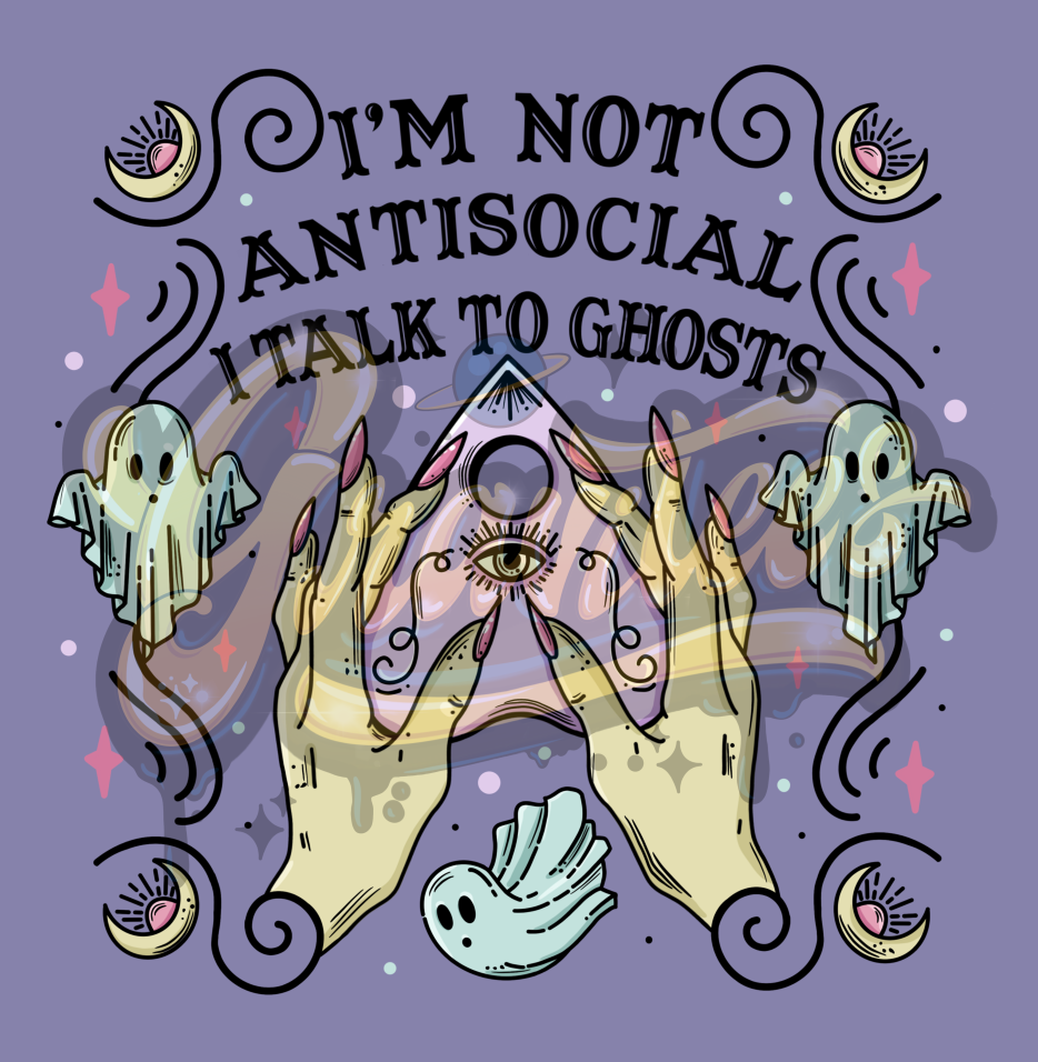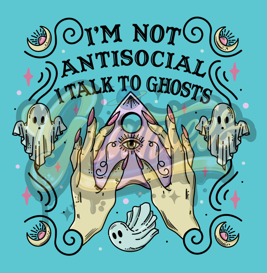 I'm Not Antisocial I talk to Ghosts PNG transfer printing. Distressed texture added - Great print for DIY shirt making.