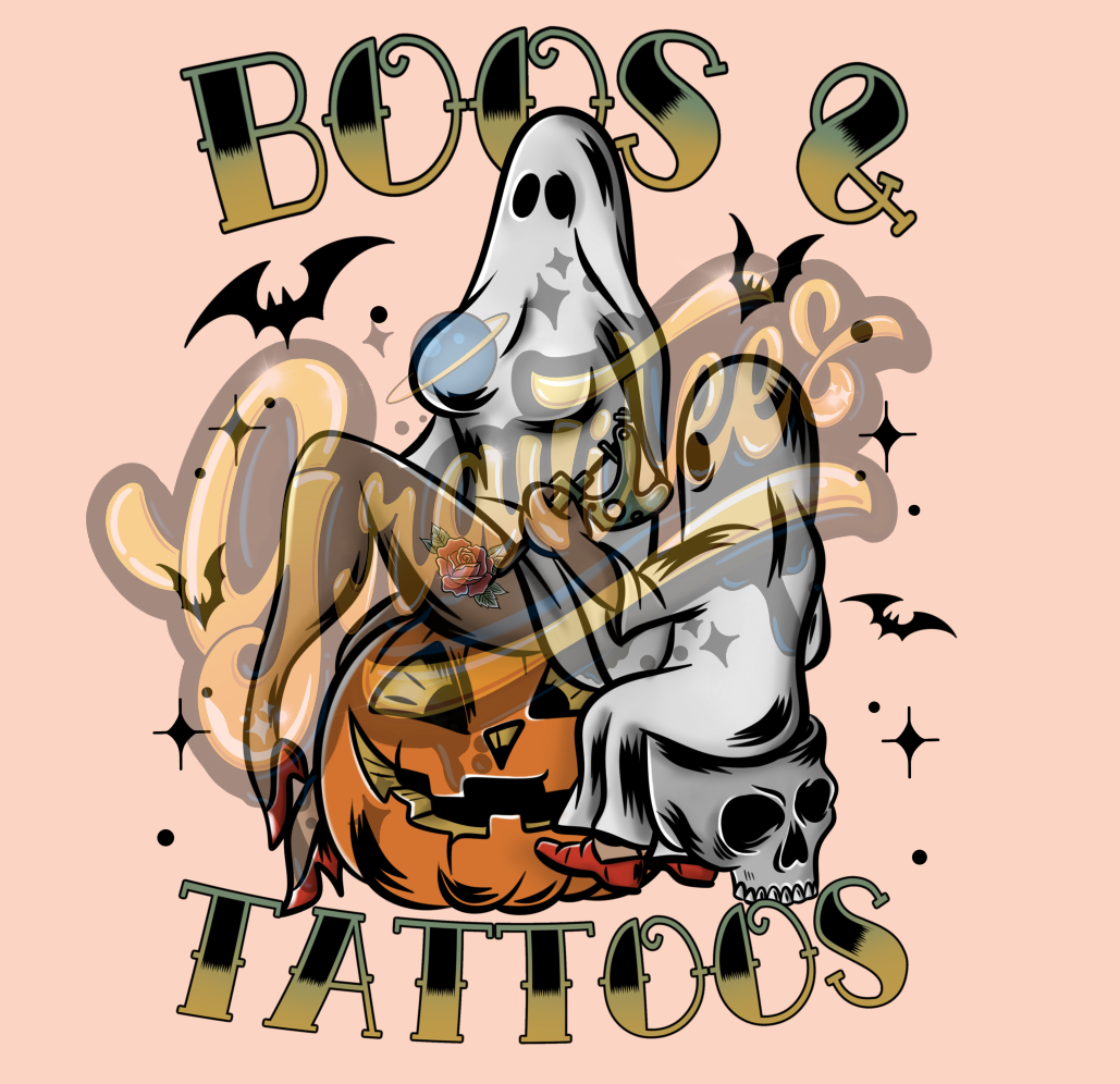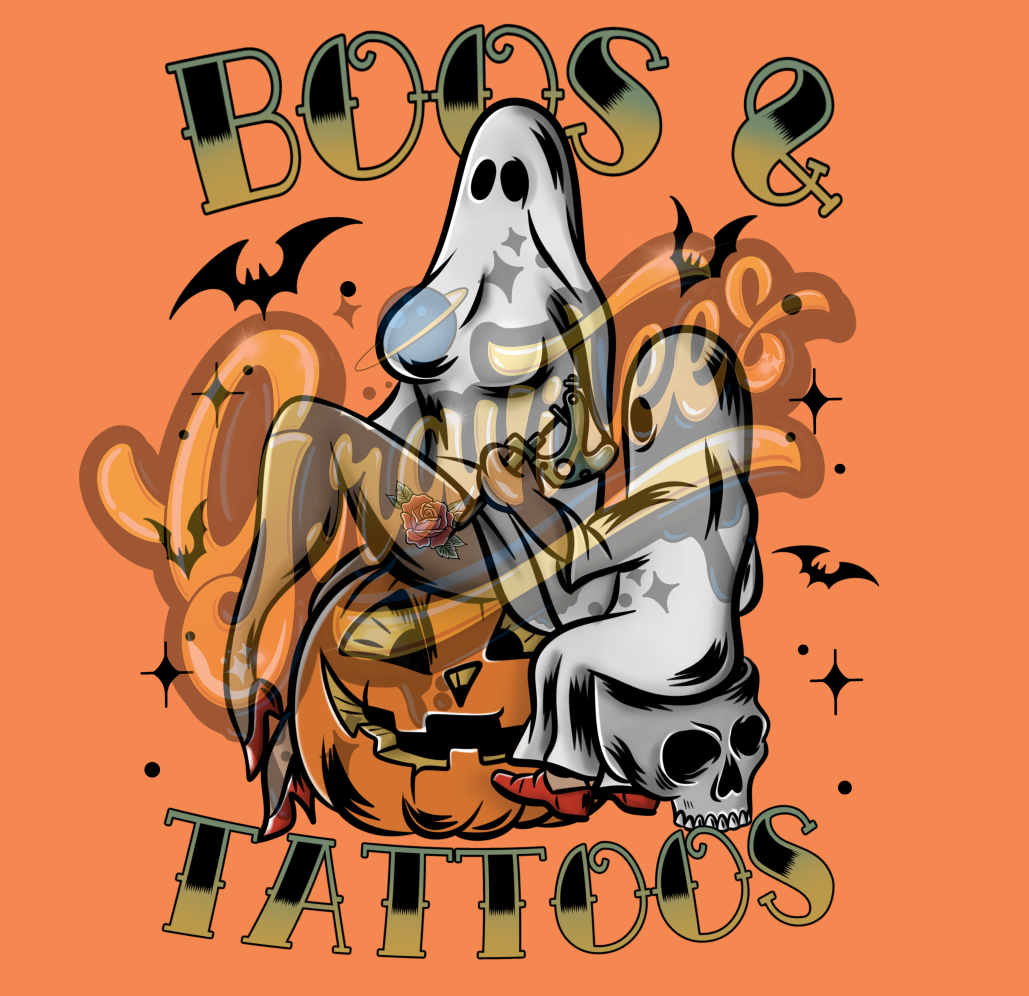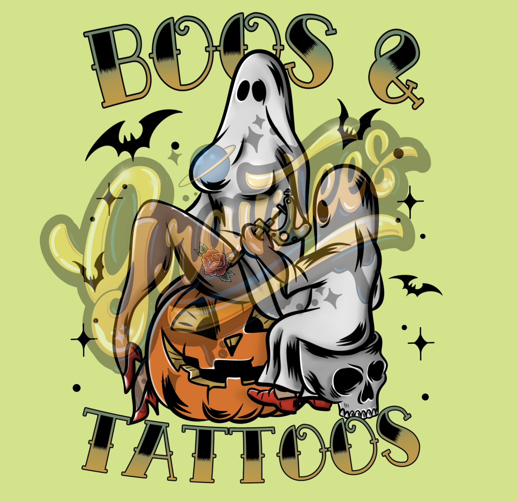 Boos & Tattoos PNG, Halloween Tattoo Png, Ghost Png,Ghost Clipart,Tattoo Clipart for DTF or Shirt Printing, Halloween Sublimation, PNG Only!