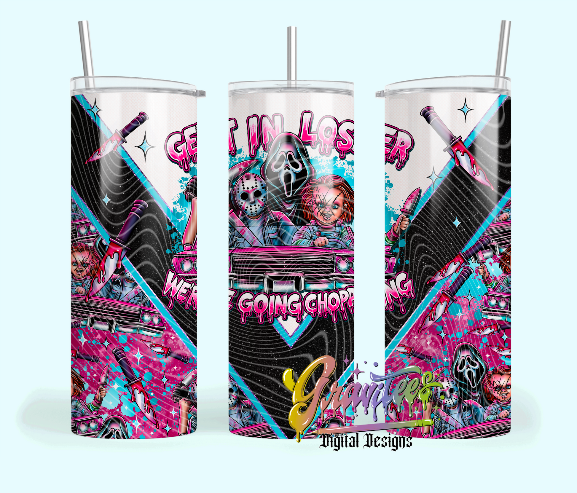 Get In Loser Horror Skinny Tumbler Design Png, Trendy Horror Skinny Template for UVDTF or Sublimation Printing, PNG Only!