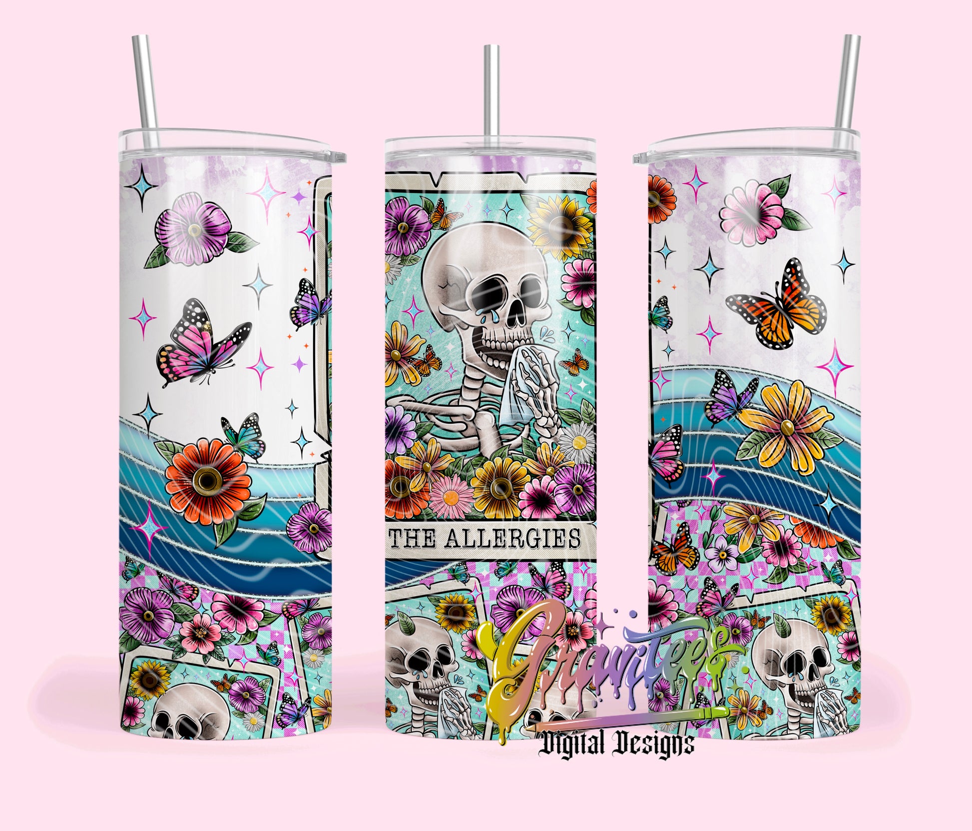 The Allergies Tarot Skeleton Skinny Tumbler Template Design Png, Skinny Tumbler Template Skeleton for UVDTF or Sublimation Printing, PNG Only!