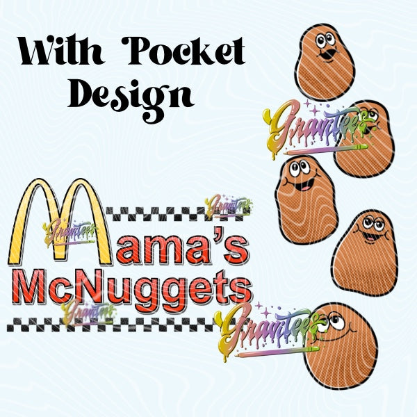 Mama Nugs PNG design for DTF, film transfer printing. Great print for DIY shirt making.