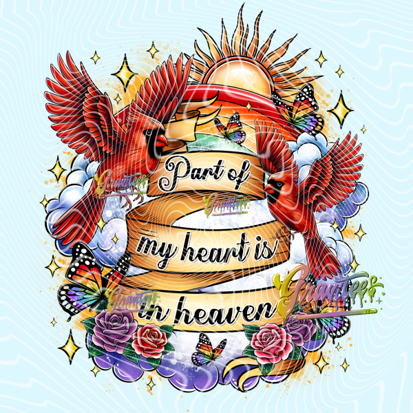 Part of My Heart is in Heaven Png, Cardinal Clipart, Memorial Clipart, Clipart for DTF or Shirt Printing, PNG Only!
