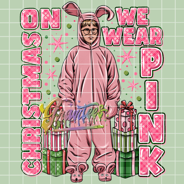 On Christmas We Wear Pink Png, Ralphie Christmas Story Clipart, Trendy Christmas Clipart, Ralphie Bunny Clipart for DTF or Shirt Printing, PNG Only!