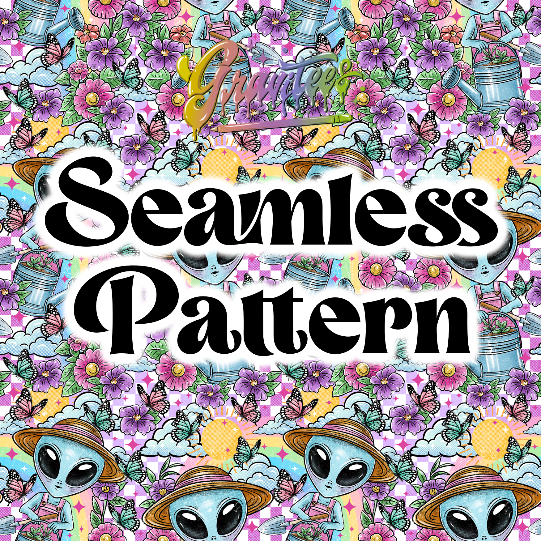Alien Plant Mama Spring Seamless Design Png, Spring Clipart, Trendy Spring Clipart, Clipart for DTF or Shirt Printing, PNG Only!
