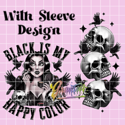Copy of Black Is My Happy Color with Sleeve Design Png, Skull Crow Clipart, Trendy Goth Clipart for DTF or Shirt Printing, PNG Only!