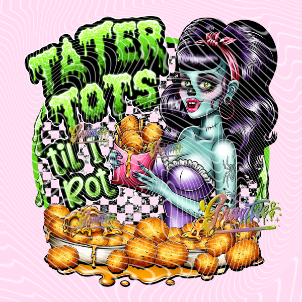 Tater Tots Til I Rot Design Png, Fries and Tots Clipart, Food Clipart, Clipart for DTF or Shirt Printing, PNG Only!