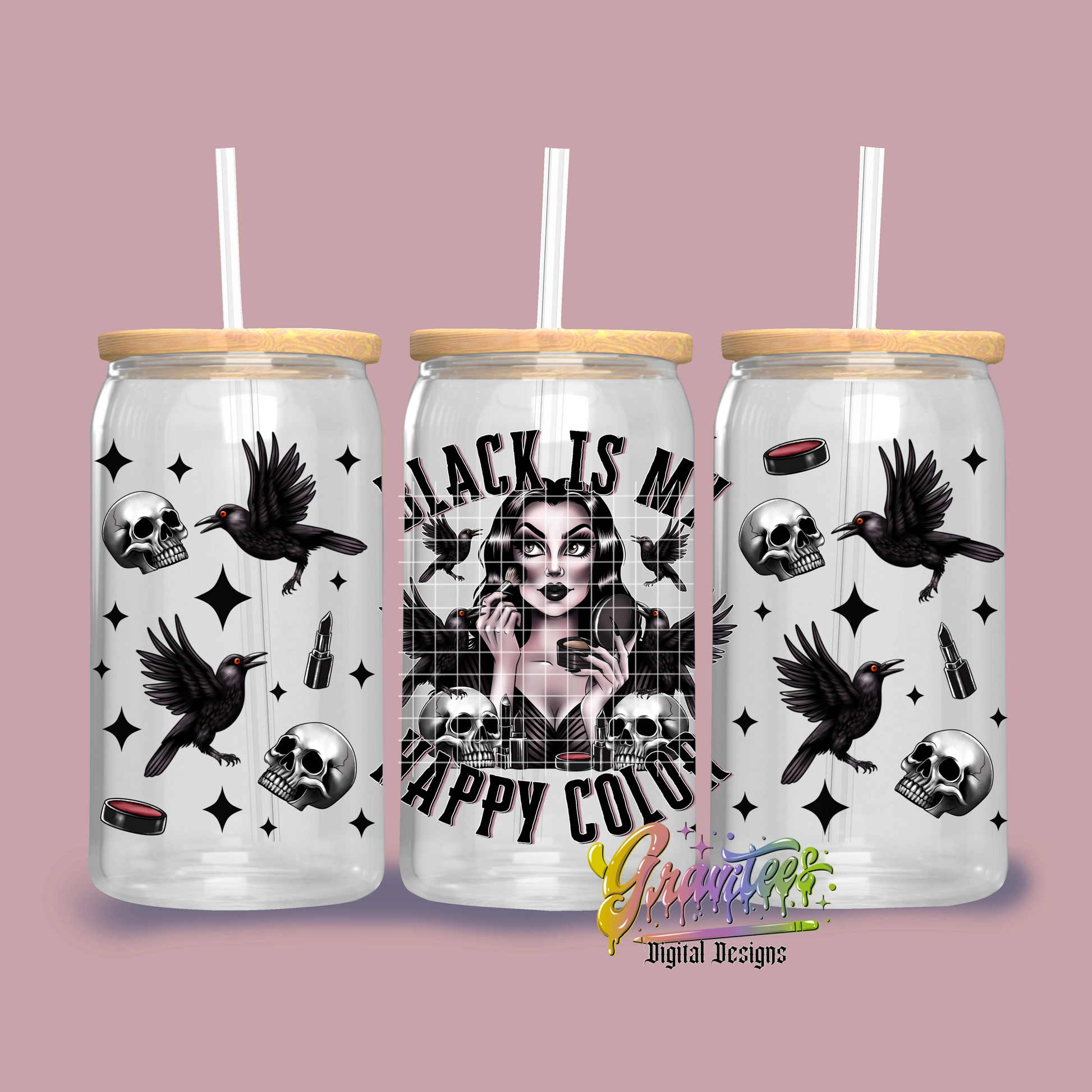 Black Is My Happy Color Libbey Template Png, Skull Crow Clipart, Trendy Goth Clipart for DTF or Shirt Printing, PNG Only!