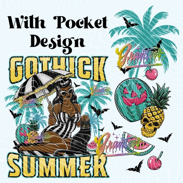 Gothick Summer 03 Design with Sleeve Png, Gothick Clipart, Gothick Clipart, Clipart for DTF or Shirt Printing, PNG Only!