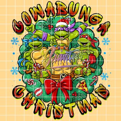 Cowabunga Christmas Png, Turtle Clipart, Trendy Christmas Clipart, Ninja Clipart for DTF or Shirt Printing, PNG Only!