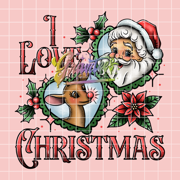I Love Christmas Png, Santa Clipart, Trendy Christmas Clipart, Rudolph Clipart for DTF or Shirt Printing, PNG Only!