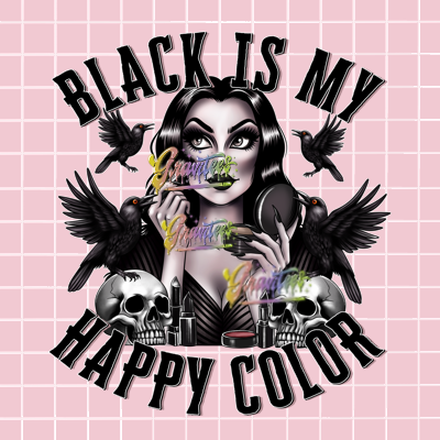 Black Is My Happy Color Png, Skull Crow Clipart, Trendy Goth Clipart for DTF or Shirt Printing, PNG Only!
