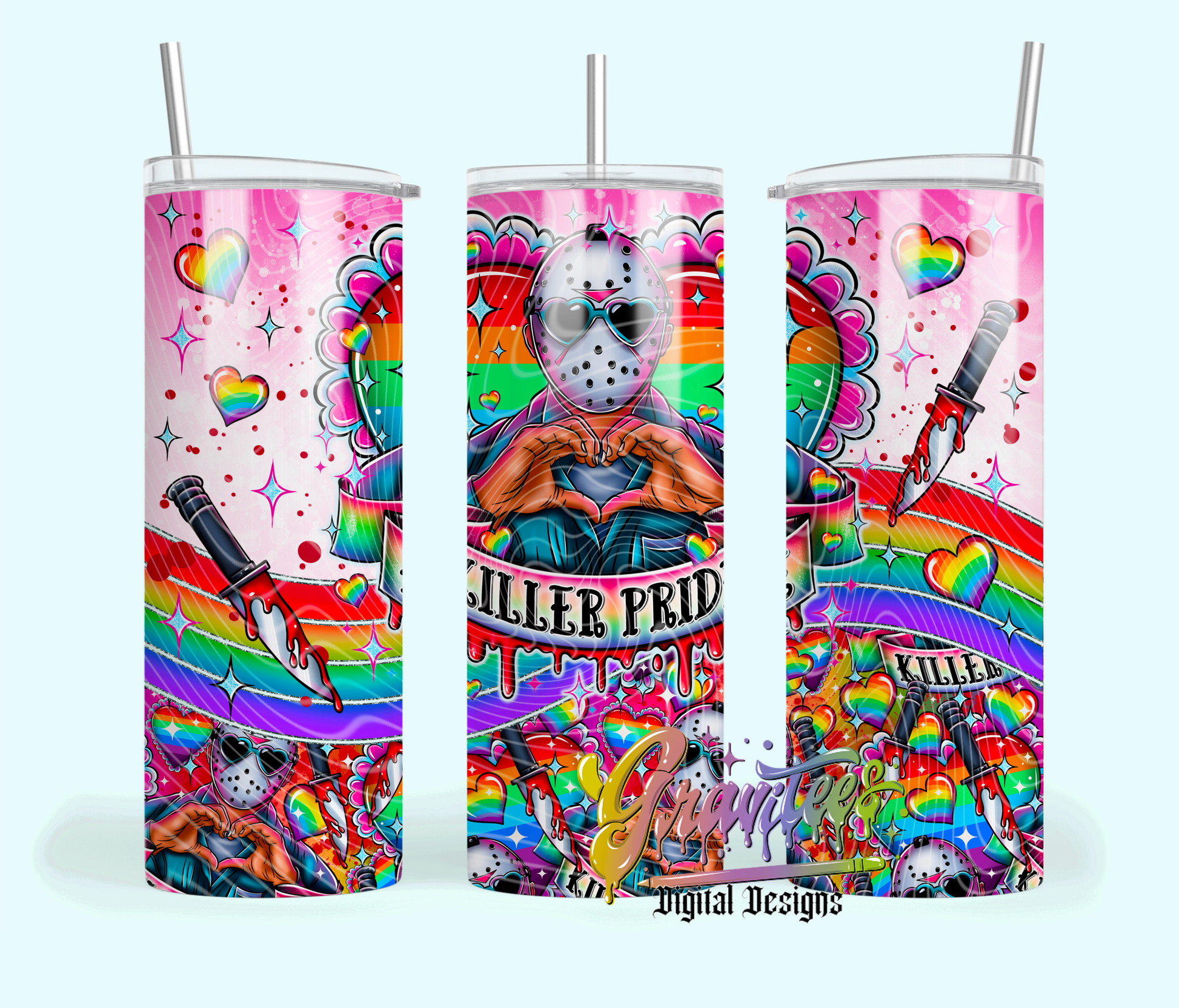 Killer Pride Skinny Tumbler Template PNG design for DTF, film transfer printing. Great print for DIY shirt making.