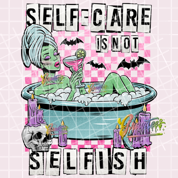 Self Care is not Selfish Png, Zombie Clipart, Trendy Spa Zombie Girl Clipart, Clipart for DTF or Shirt Printing, PNG Only!