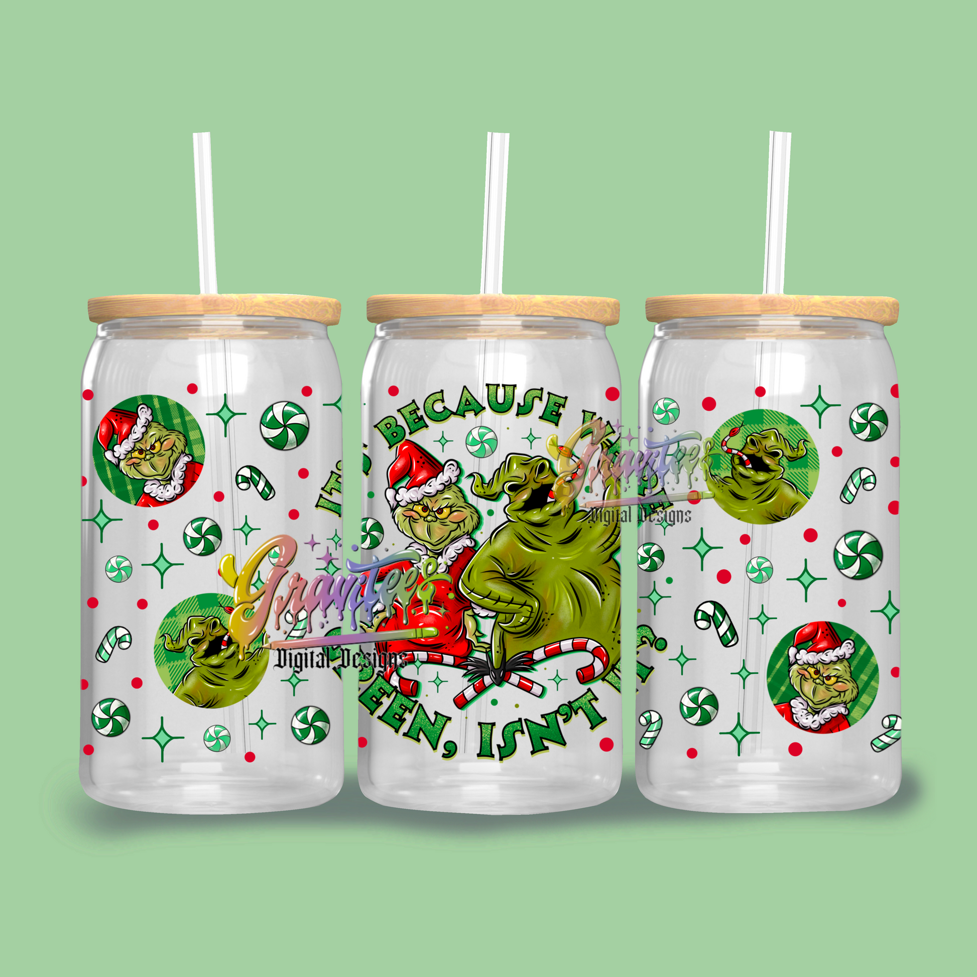 It's Because We're Green Isn't It, Oogie Boogie Template Design for 16oz. Libbey Glass Cup PNG ONLY!!