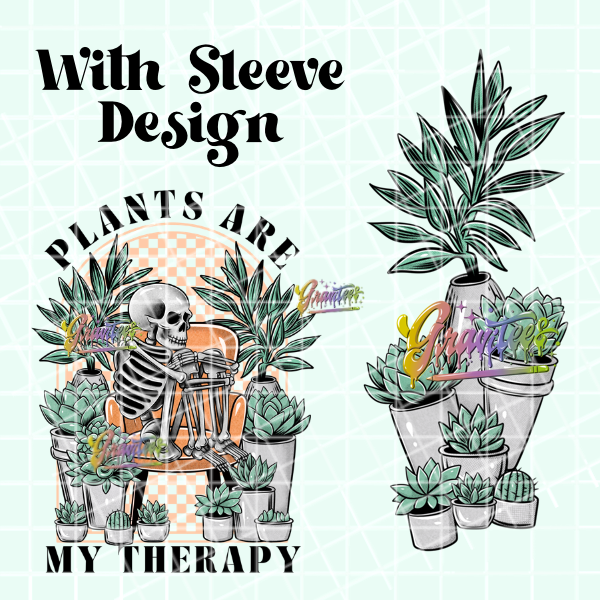 Plants Are My Therapy With Sleeve Design Png, Plant Lover Clipart, Trendy Skeleton Clipart, Clipart for DTF or Shirt Printing, PNG Only!
