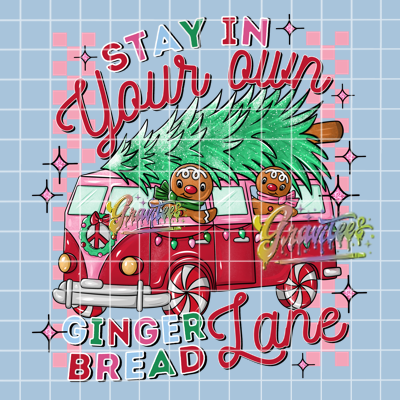 Stay In Your Own Gingerbread Lane Png, Gingerbread Clipart, Trendy Christmas Clipart, Gingerbreads Clipart for DTF or Shirt Printing, PNG Only!G Only!
