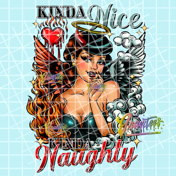 Kinda Naughty Kinda Nice Png, Angel Clipart, Trendy Girl Clipart, Clipart for DTF or Shirt Printing, PNG Only!