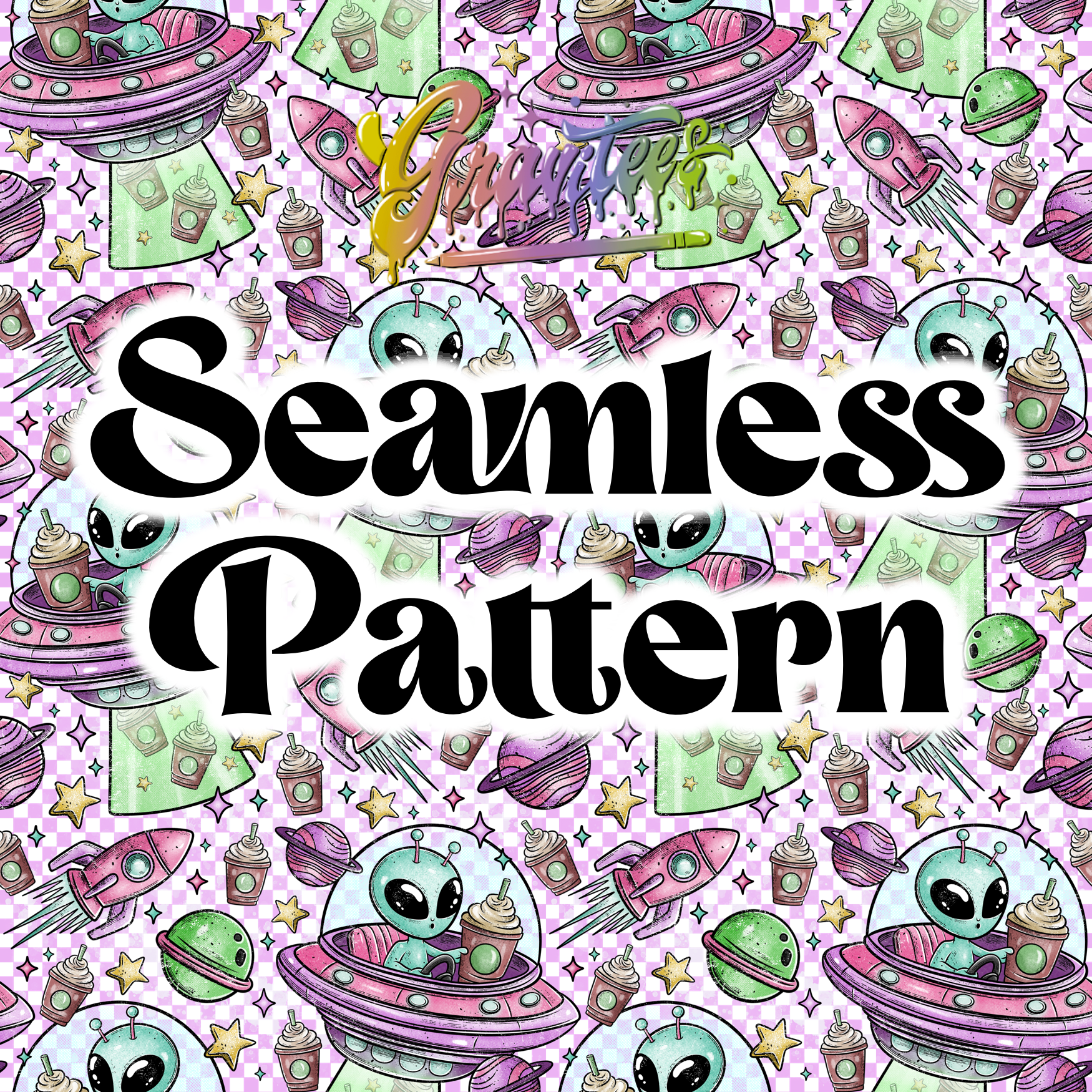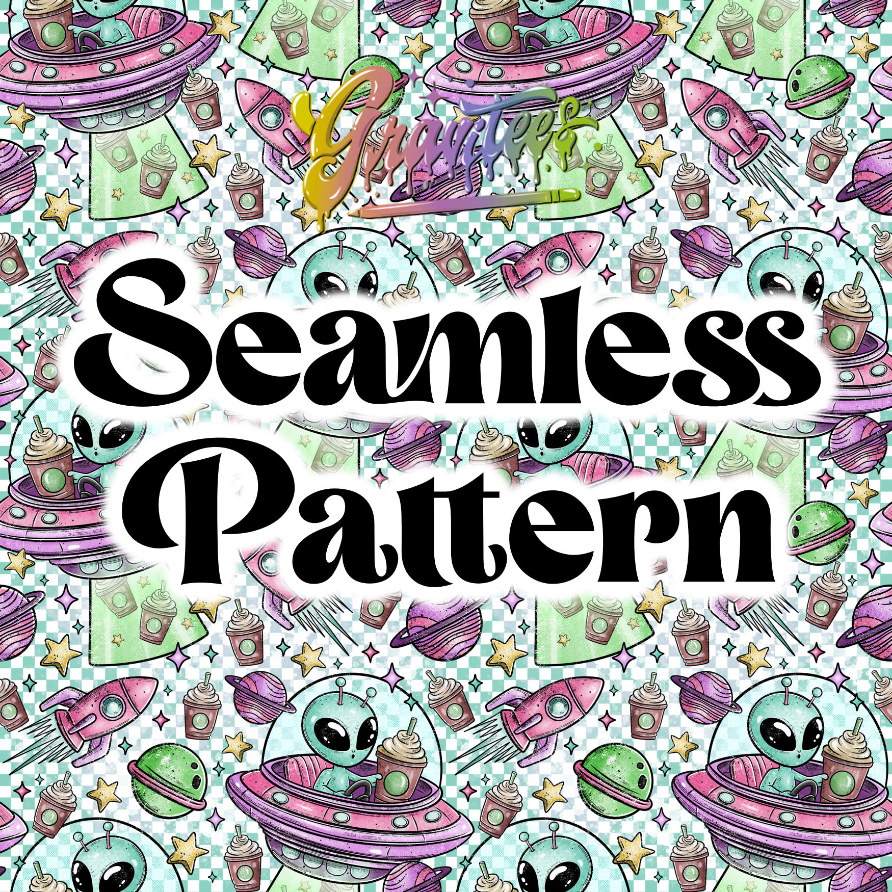 Take Me To Your Coffee Seamless Design Png, Coffee Alien Clipart, Trendy Coffee Clipart, Clipart for DTF or Shirt Printing, PNG Only!