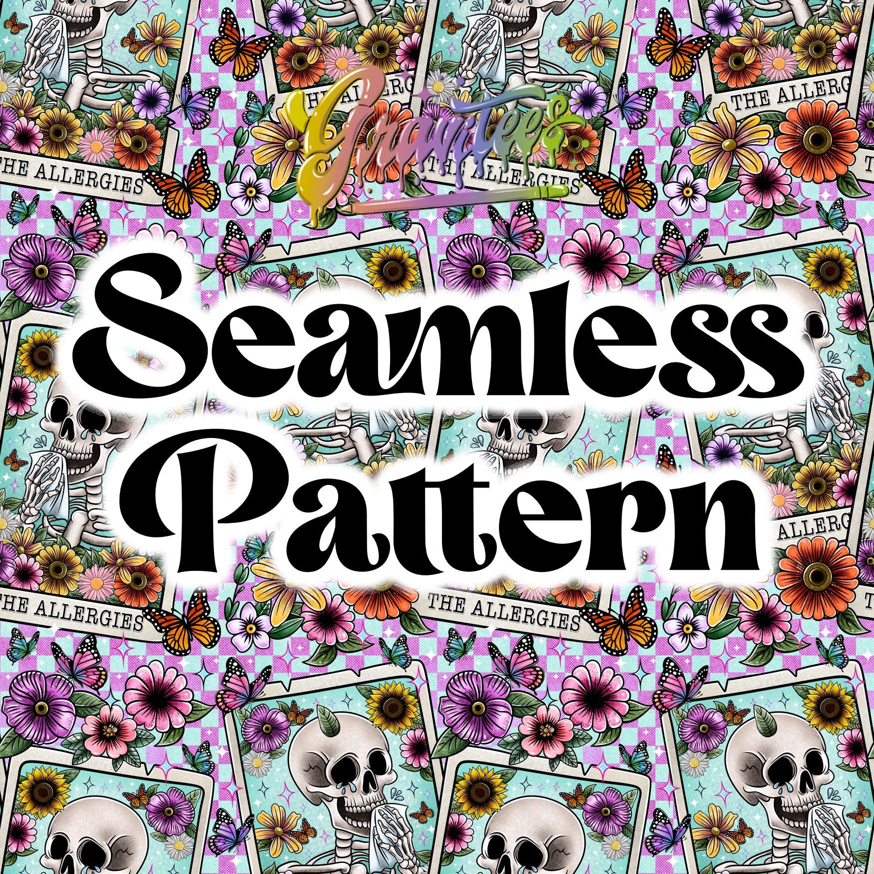 The Allergies Tarot Skeleton Seamless Design Png, Tarot Clipart, Skeleton Clipart for DTF or Shirt Printing, PNG Only!