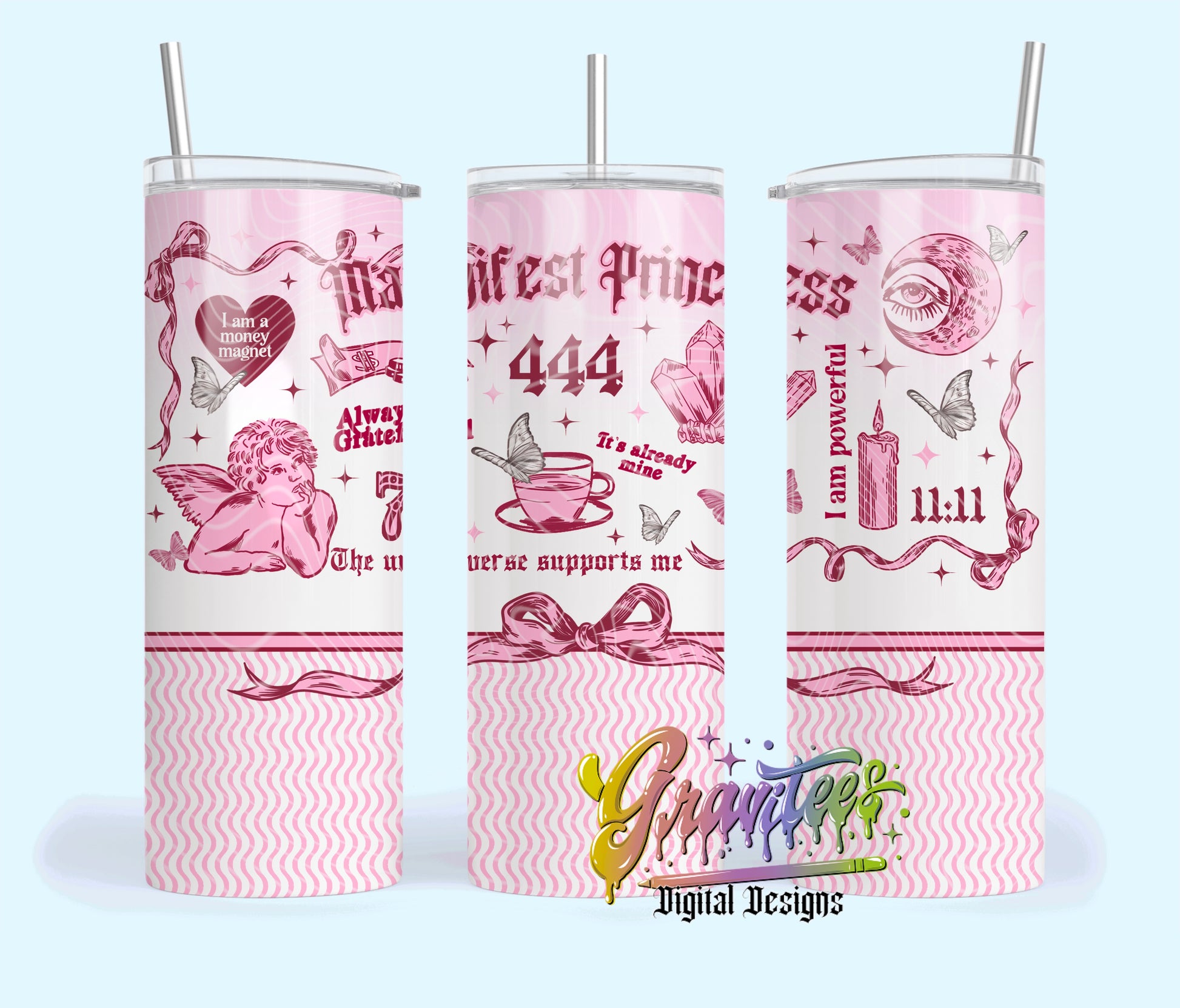 Manifest Princess 20oz Tumbler Template Design PNG, for UVDTF or Sublimation Printing PNG Only!