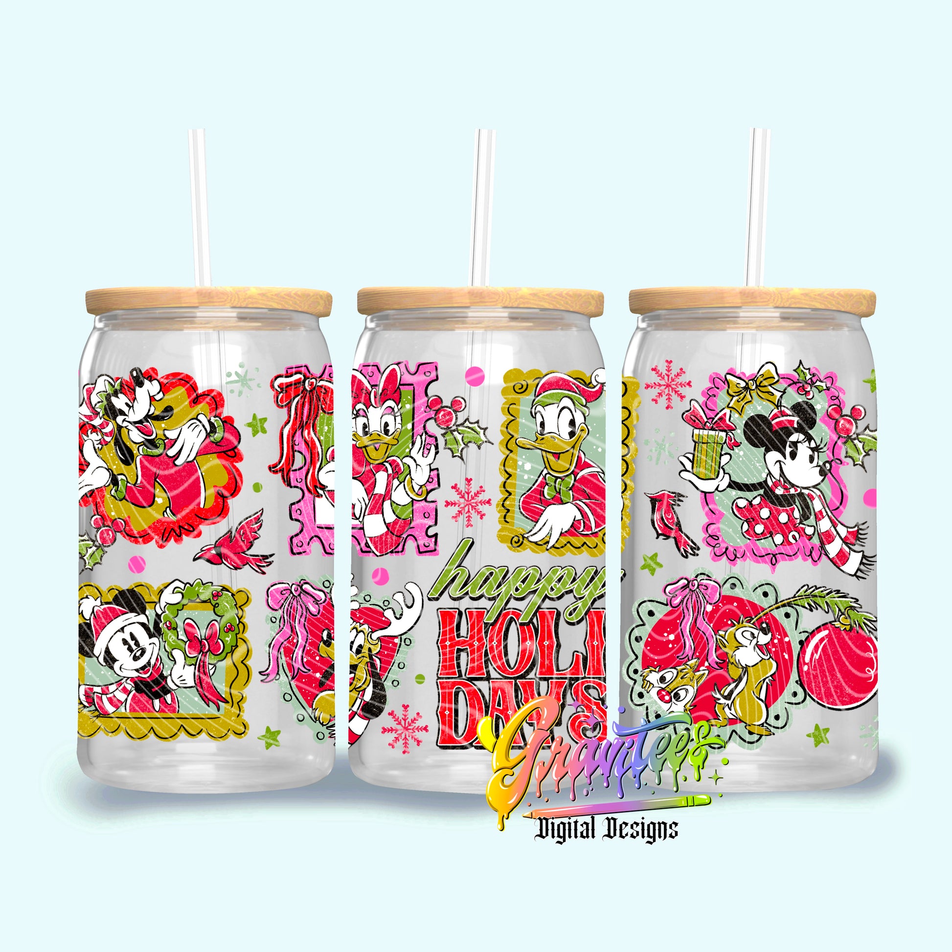 HAPPY HOLIDAYS MOUSE 16oz Tumbler Template Design PNG, for UVDTF or Sublimation Printing PNG Only!!