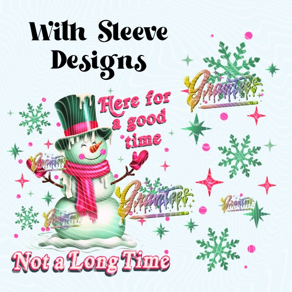 Here For A Good Time Snowman Christmas Design With Sleeve Design for DTF or Sublimation Shirt Printing, PNG Only
