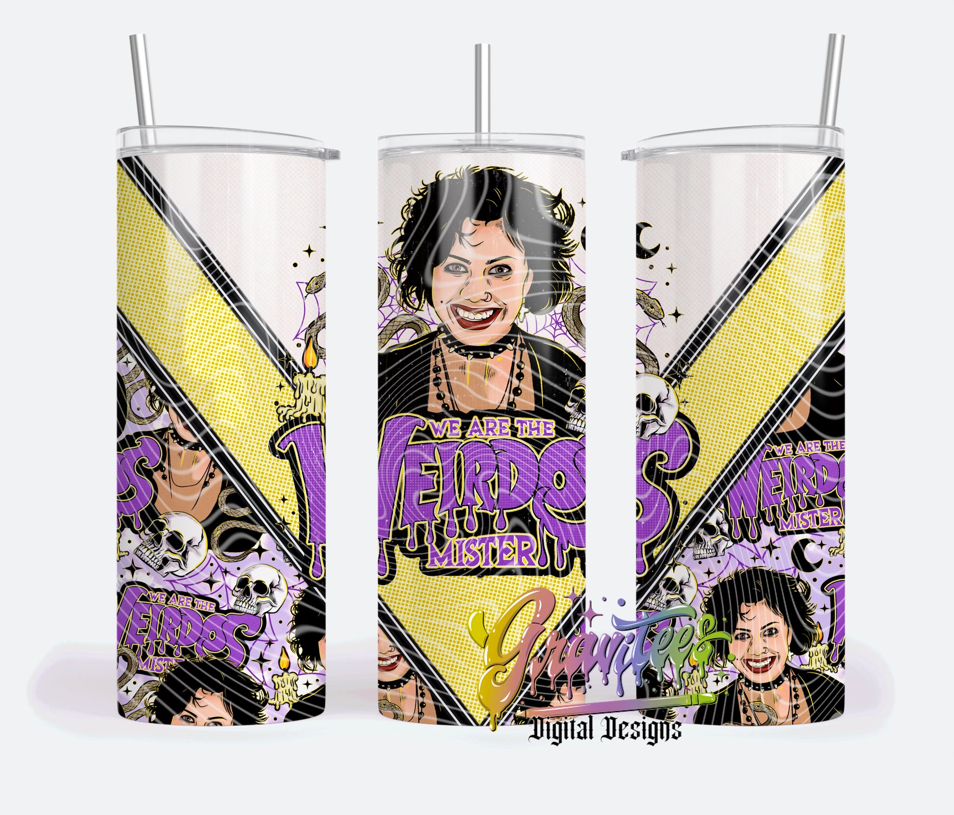 Weirdo Witch Skinny Tumbler Template Design PNG, Horror Summer Clipart for UVDTF or Sublimation Printing PNG Only!