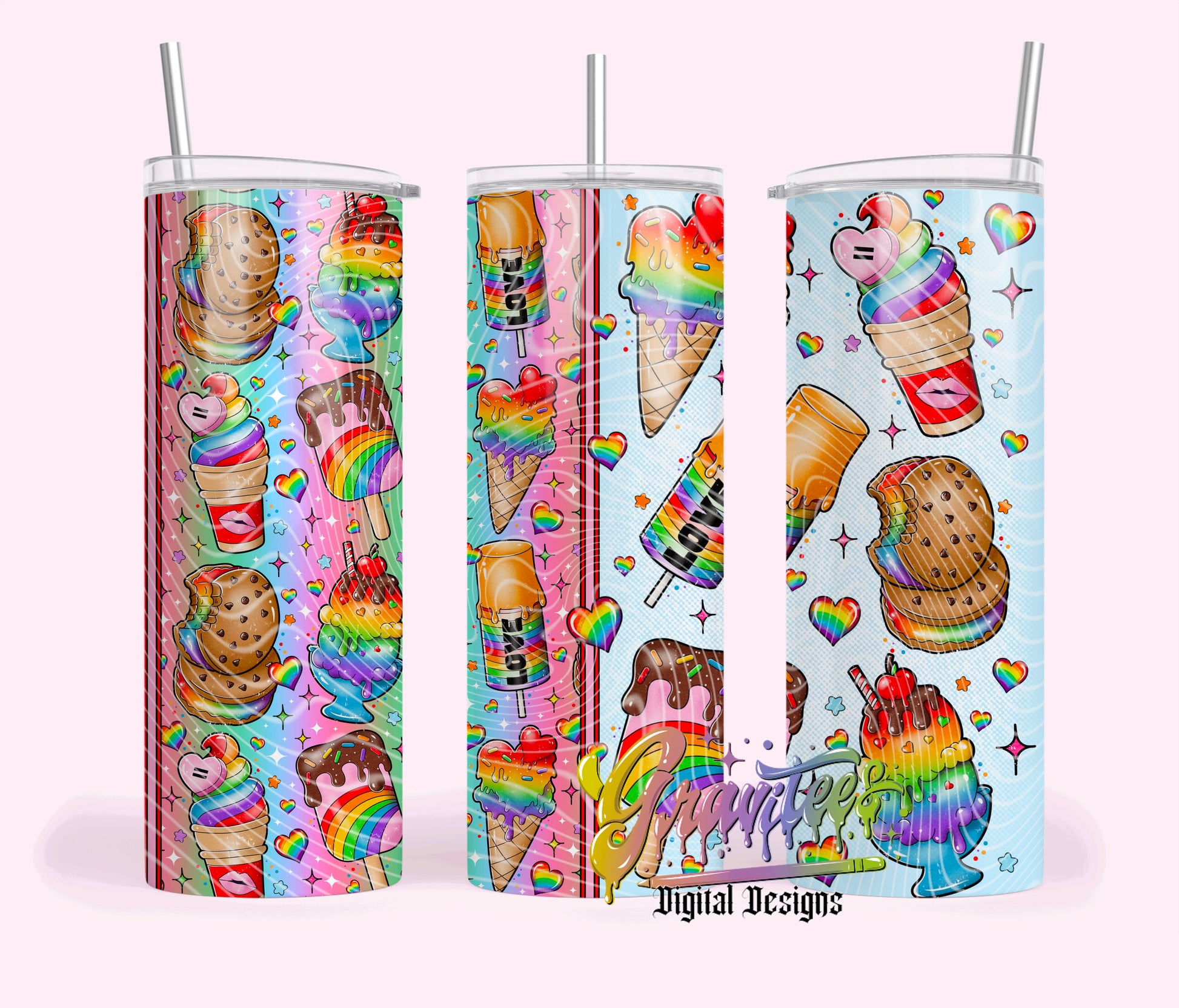 Pride Ice Creams Skinny Tumbler Template Design PNG, Rainbow Pride Summer Clipart for UVDTF or Sublimation Printing PNG Only!