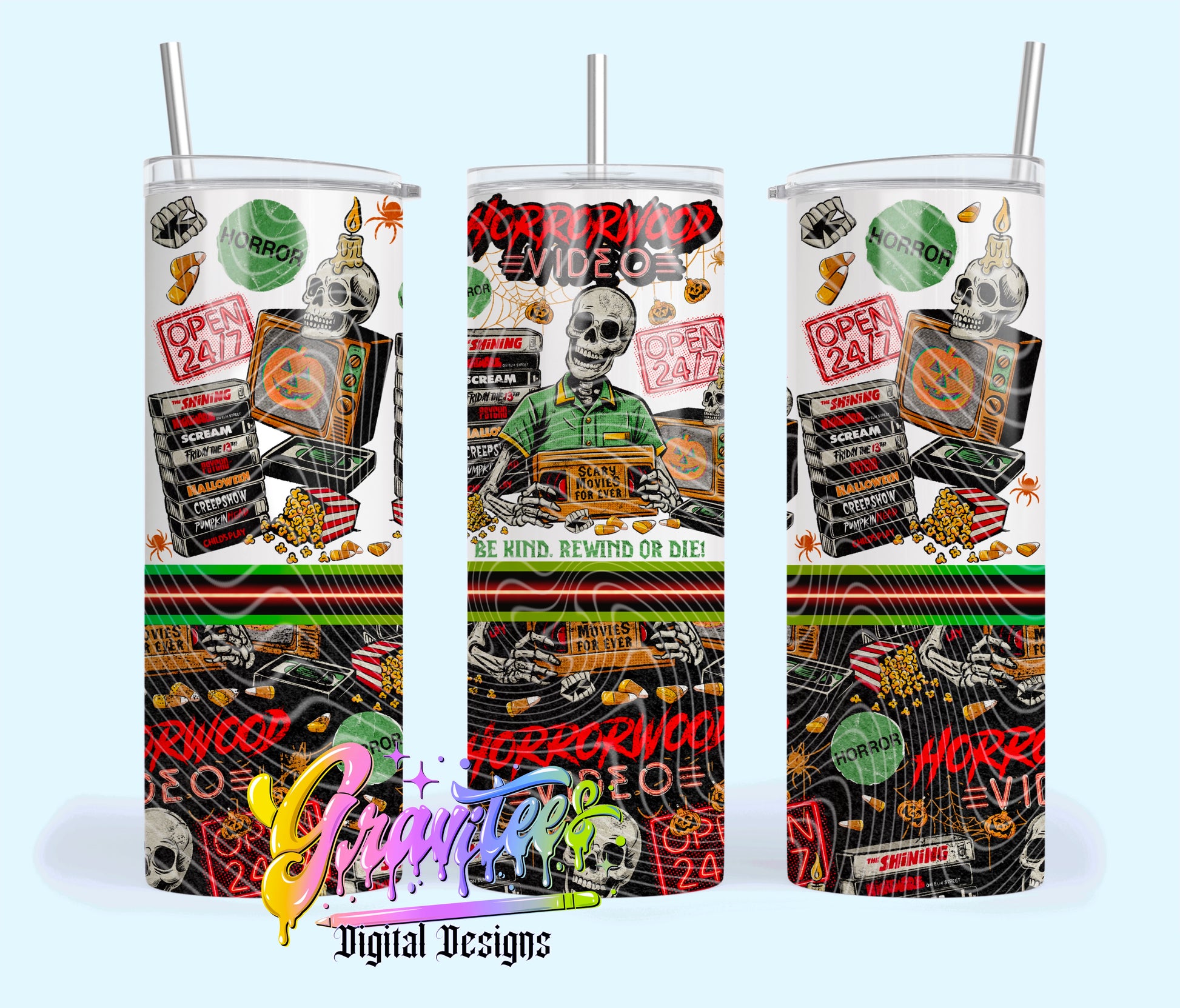 HORRORWOOD VIDEO 20oz Tumbler Template Design PNG, for UVDTF or Sublimation Printing PNG Only!!