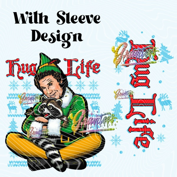 Hug Life Christmas With Sleeve Design for DTF or Sublimation Shirt Printing, PNG Only