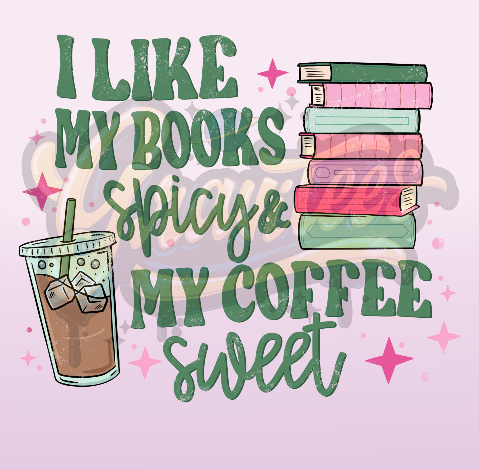 I like my books spicy and my coffee sweet PNG, Book Lover Clipart for DTF or Shirt Printing, PNG Only!