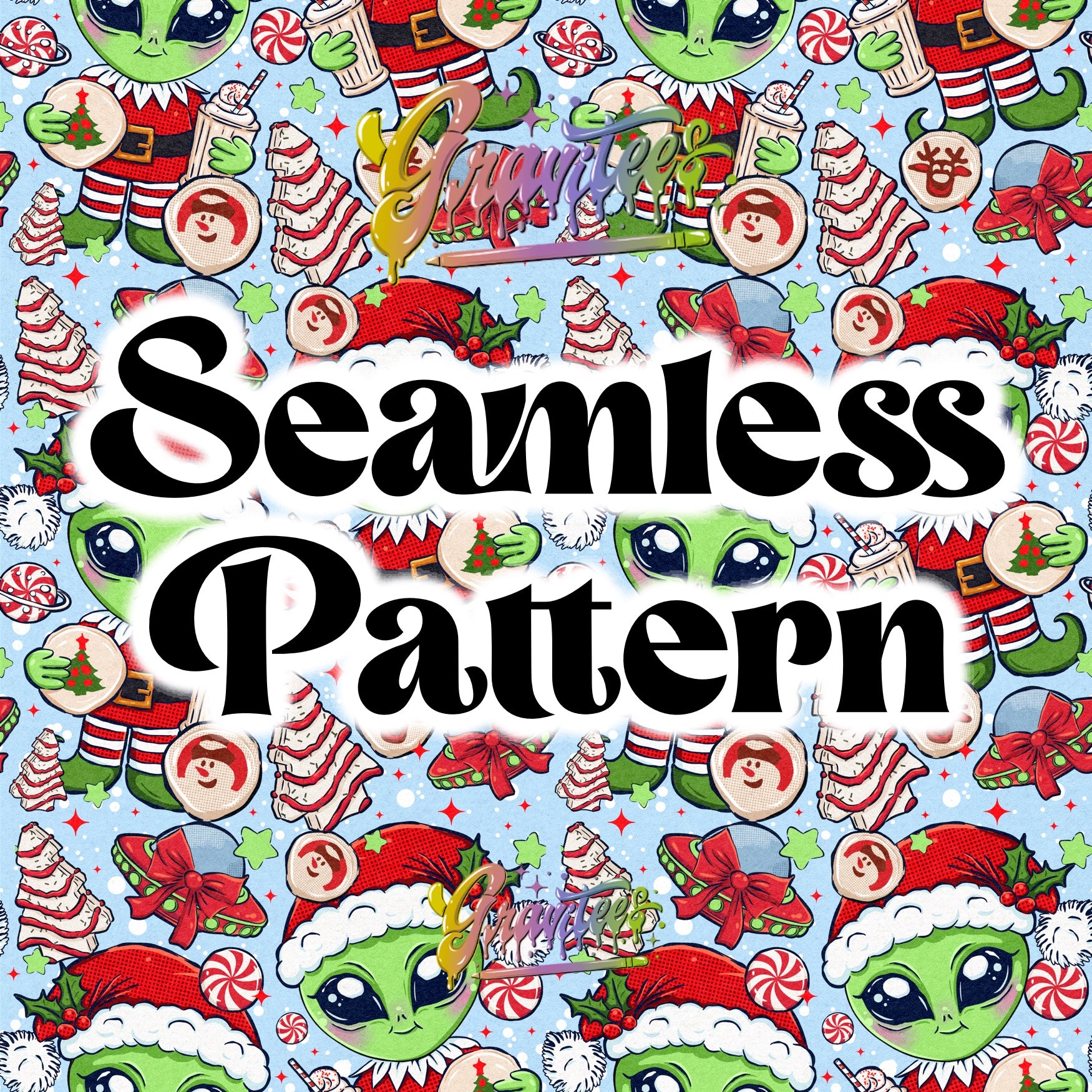 Just Here For The Food Alien Christmas Seamless Design for DTF or Sublimation Shirt Printing, PNG Only