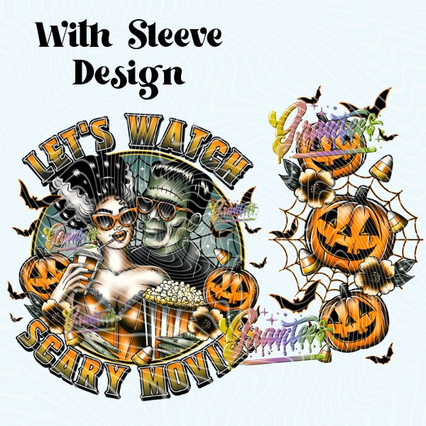 Let’s Watch Scary Movies with Sleeve Design PNG, Halloween Movie Design for DTF or Shirt Printing PNG Only