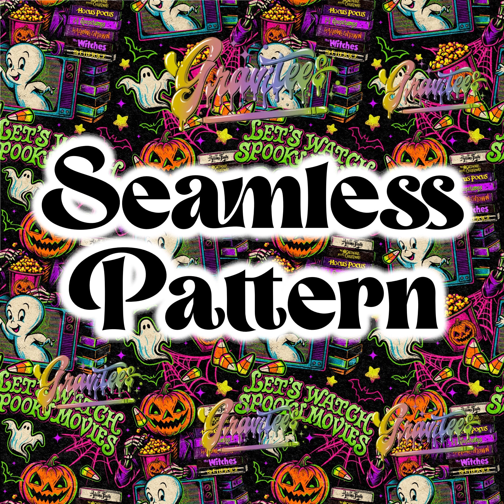 Let’s Watch Spooky Movies with Seamless Design Png for DTF or Shirt Printing, PNG Only!
