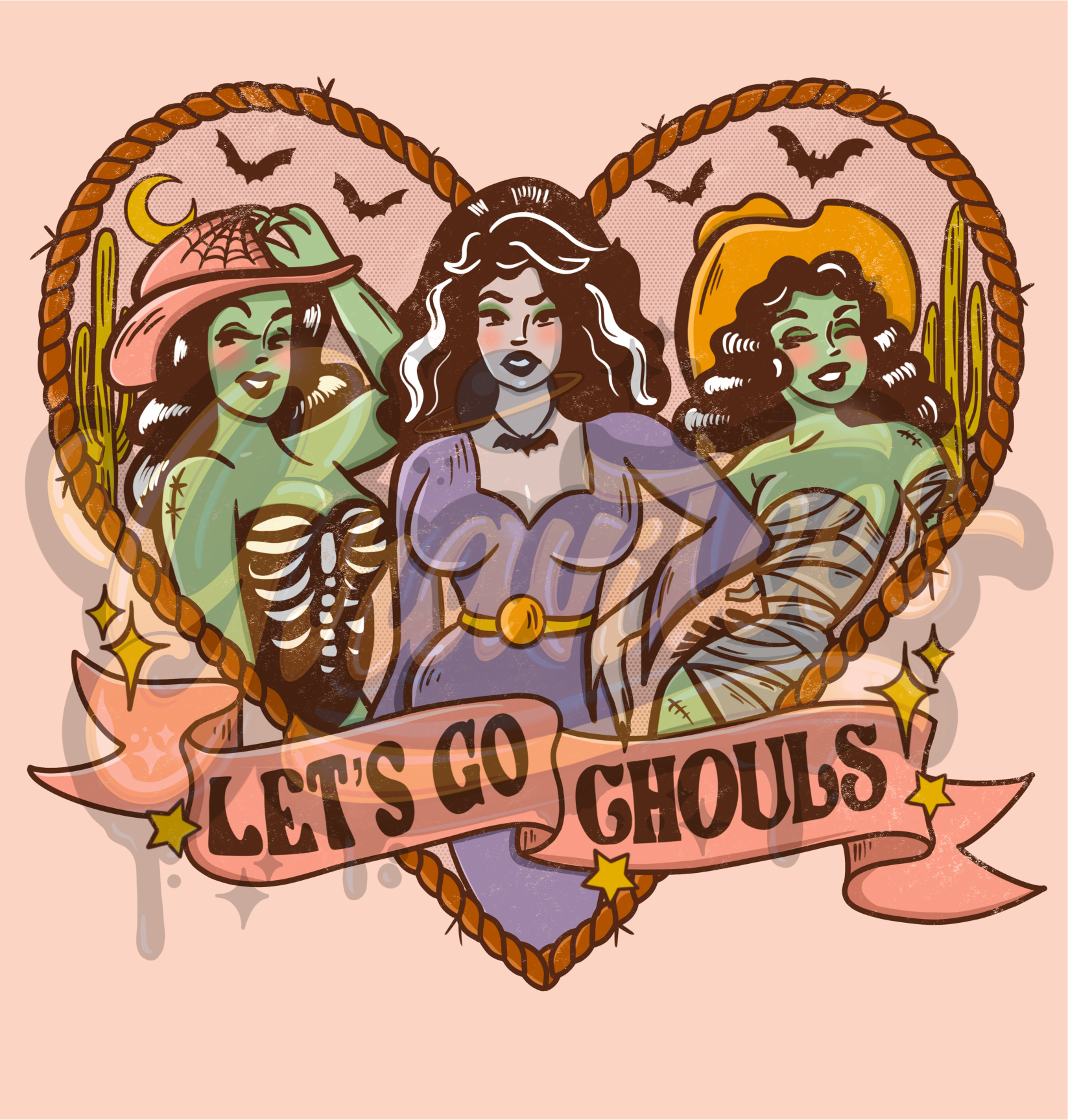Let's Go Ghouls PNG, Spooky Cowgirls Clipart for DTF or Shirt Printing, Halloween Sublimation, PNG Only!