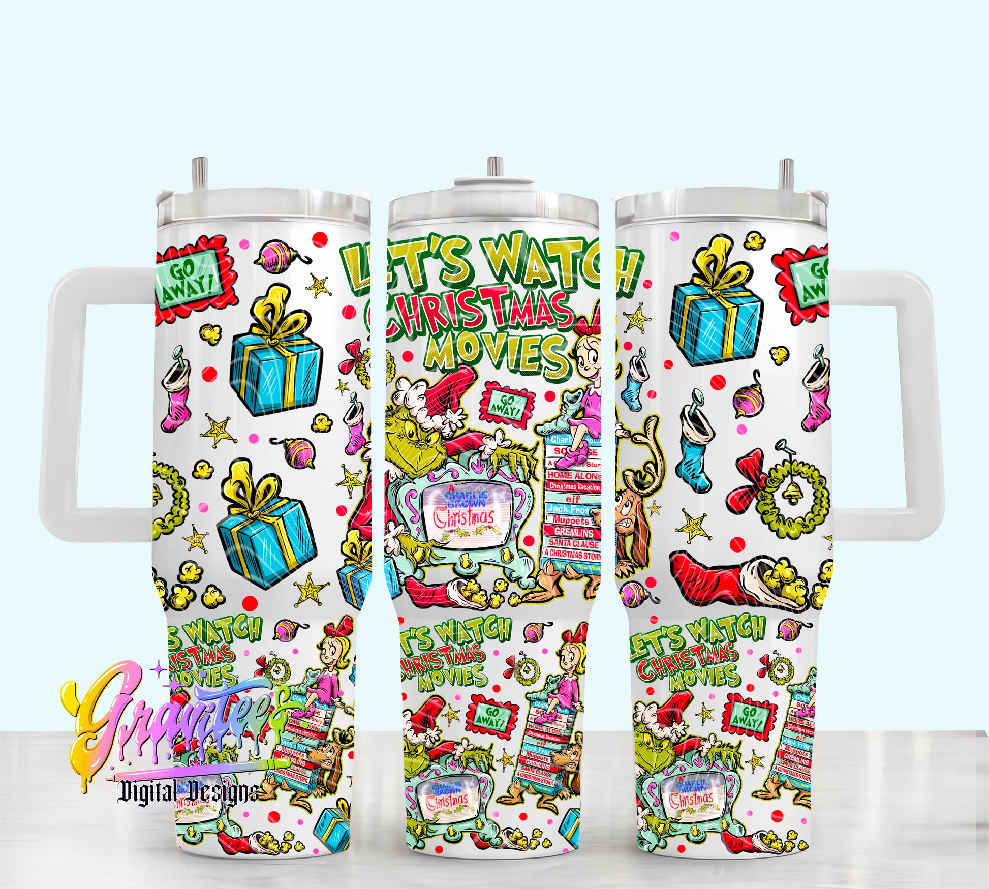LETS WATCH CHRISTMAS MOVIES 40oz Tumbler Template Design PNG, for UVDTF or Sublimation Printing PNG Only!!
