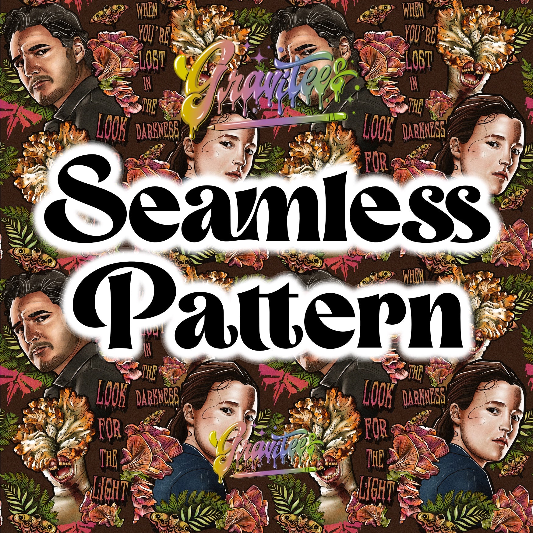 LOST IN THE DARKNESS Seamless Design Png for DTF or Shirt Printing, PNG Only!