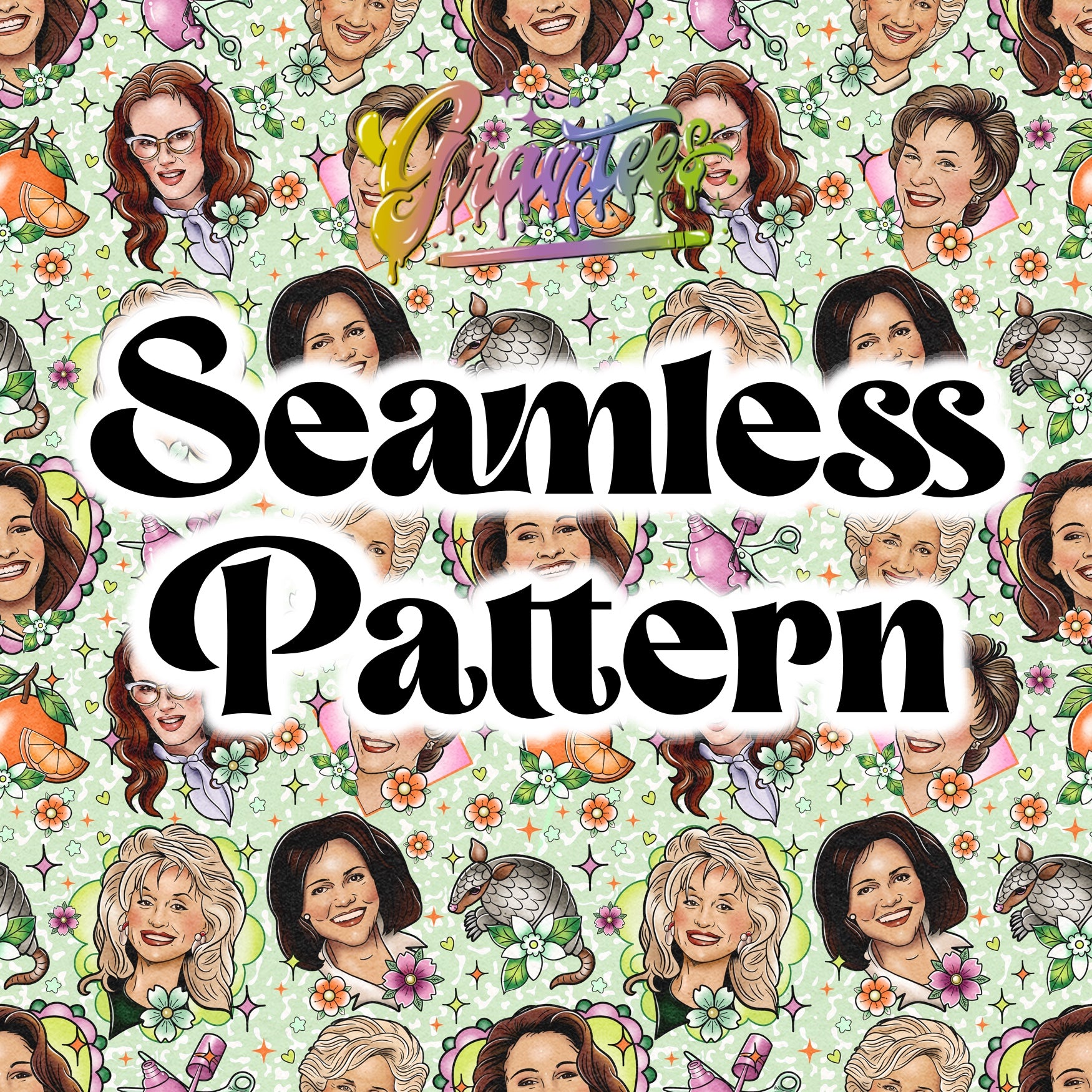 Magnolias Tattoo Flash Seamless Pattern Png Clipart, Movie Clipart for DTF or Shirt Printing, PNG Only!