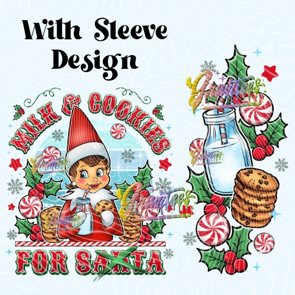 Female Elf Milk & Cookies Christmas Design With Sleeve Design for DTF or Sublimation Shirt Printing, PNG Only