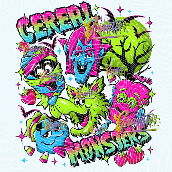 NEON CEREAL design for DTF, film transfer printing. Great print for DIY shirt making.