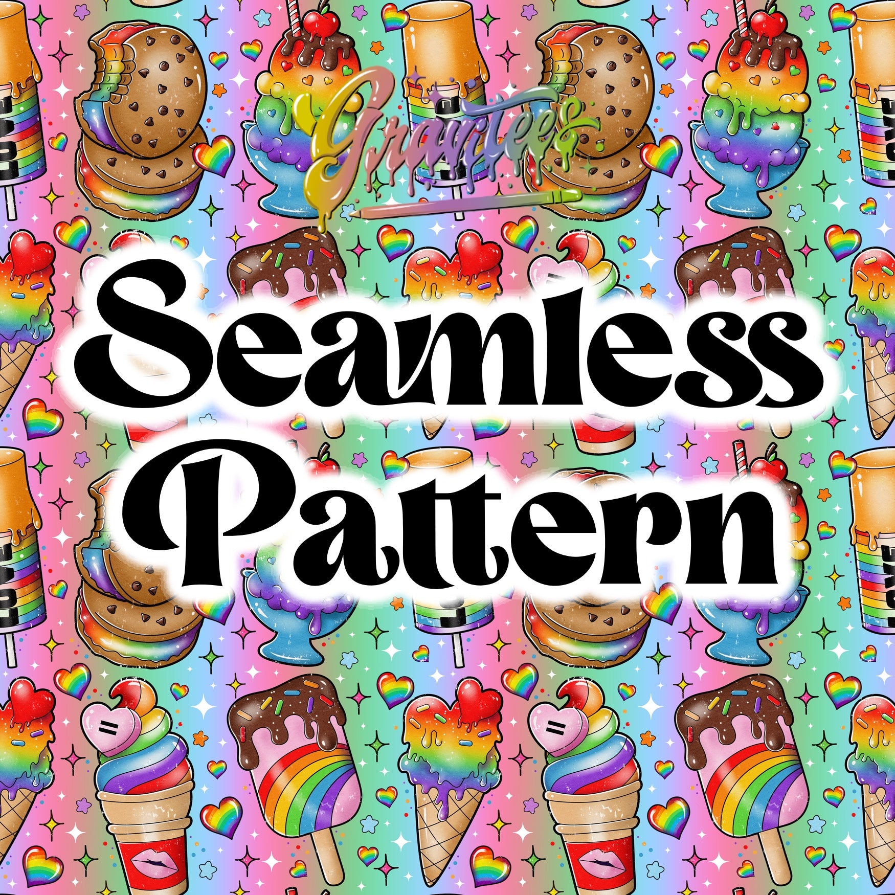 Pride Ice Creams Seamless Pattern Png Clipart, Rainbow Pride Clipart for DTF or Shirt Printing, PNG Only!