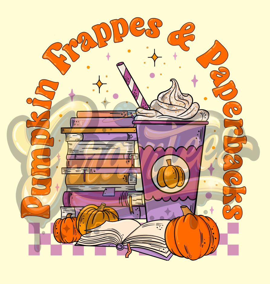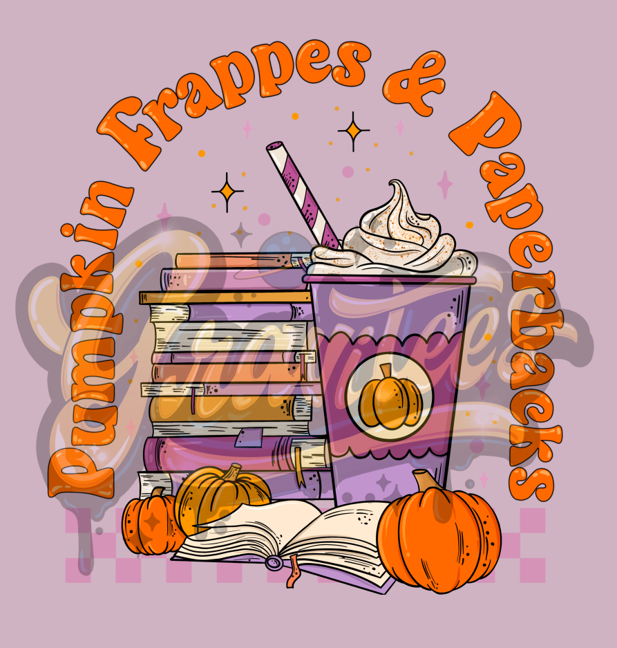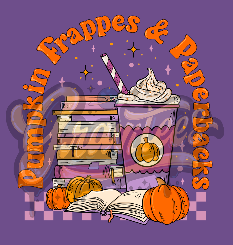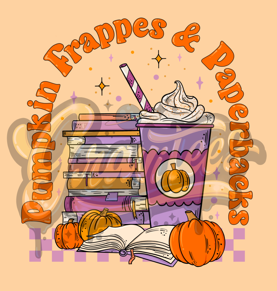 Pumpkin Frappes and Paperbacks PNG, Pumpkin Spice Clipart, Book Clipart, Book Lover Clipart for DTF or Shirt Printing, PNG Only!