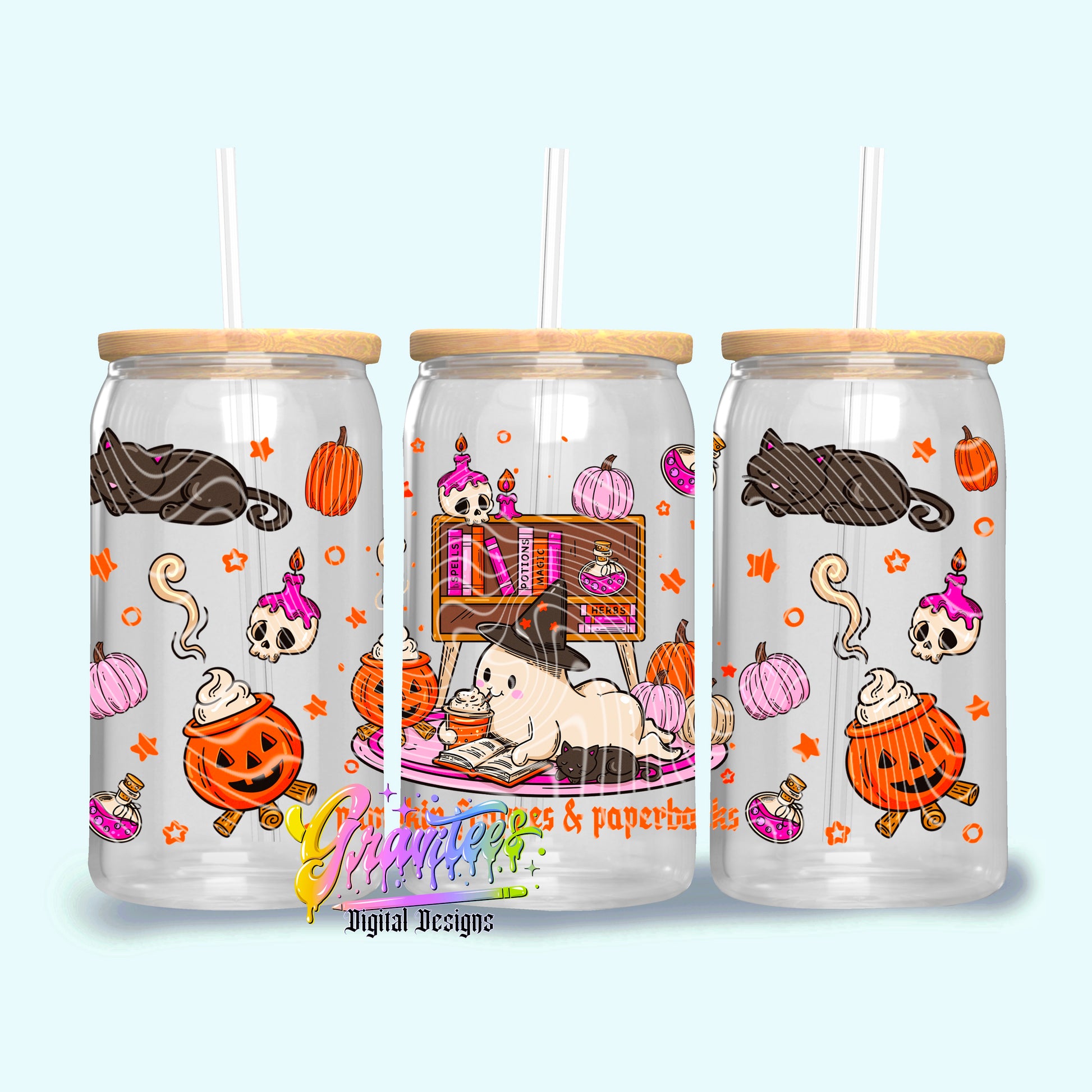 Pumpkin Frappes & Paperbacks Design 16oz Tumbler Template Design PNG, for UVDTF or Sublimation Printing PNG Only!!
