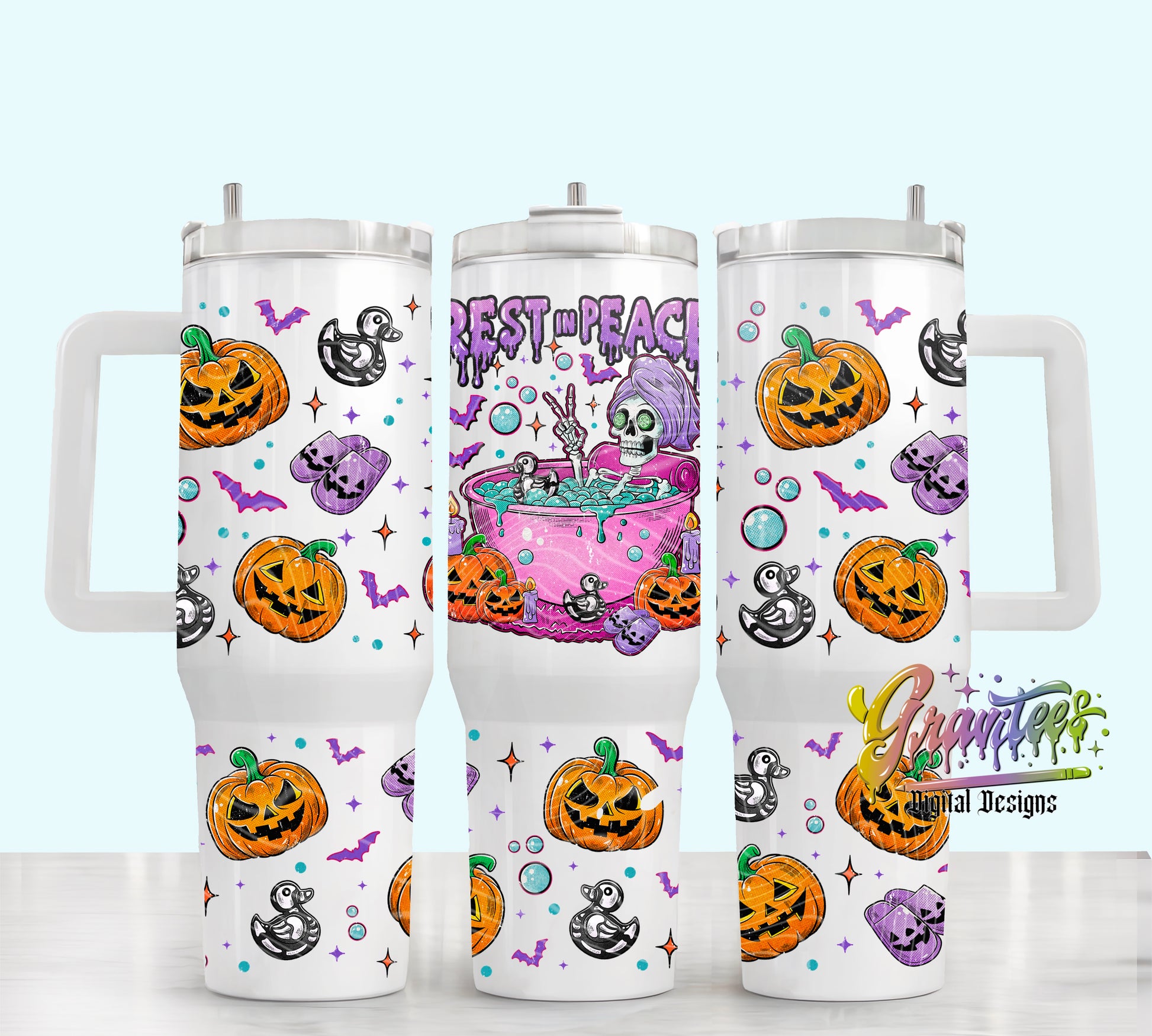 Rest In Peace 40oz Template PNG, Halloween Skeleton Clipart for UVDTF or Sublimation Printing PNG Only!