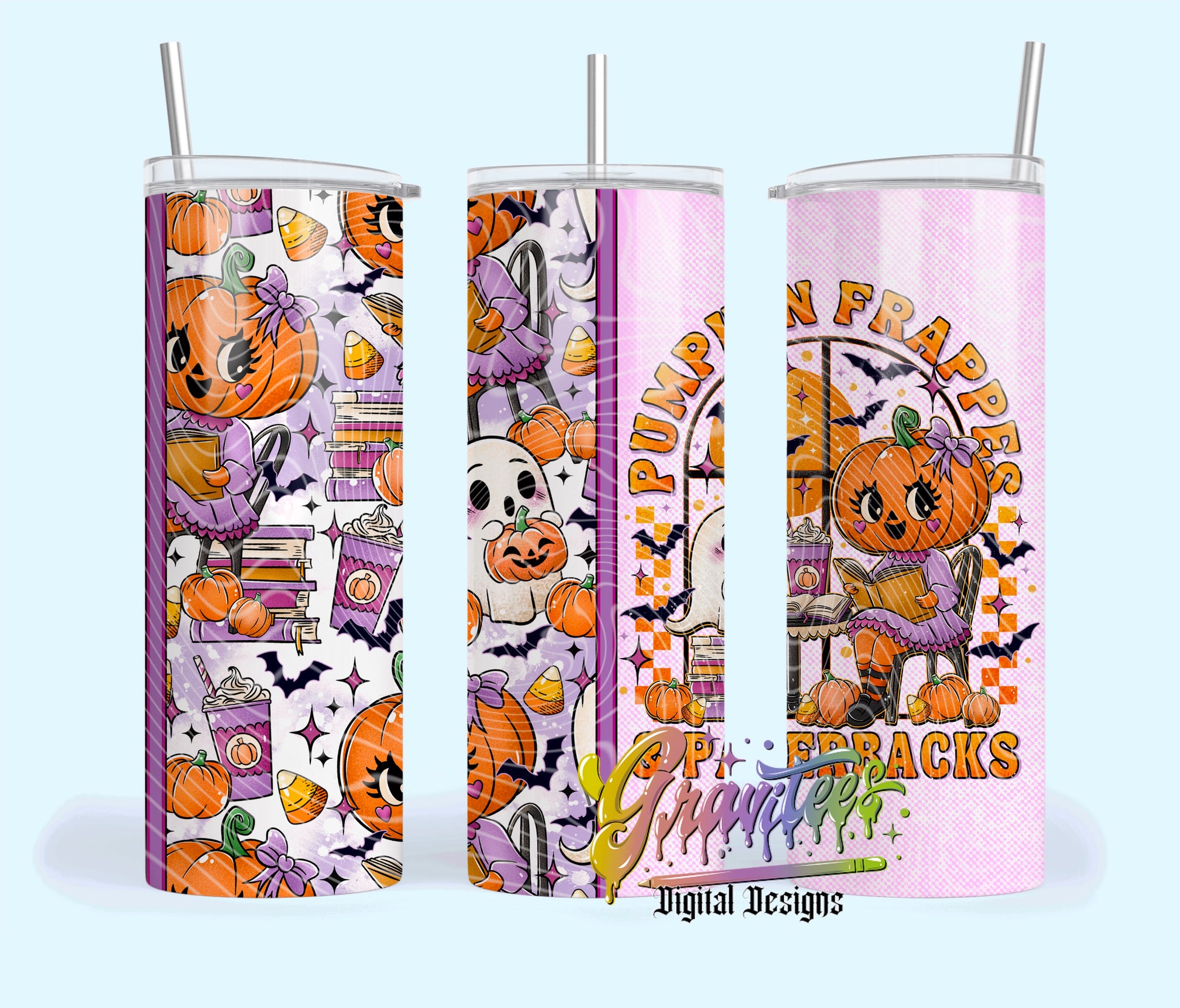 Pumpkin Frappes & Paperbacks 20oz Skinny Template PNG, Halloween Fall Clipart for UVDTF or Sublimation Printing PNG Only!