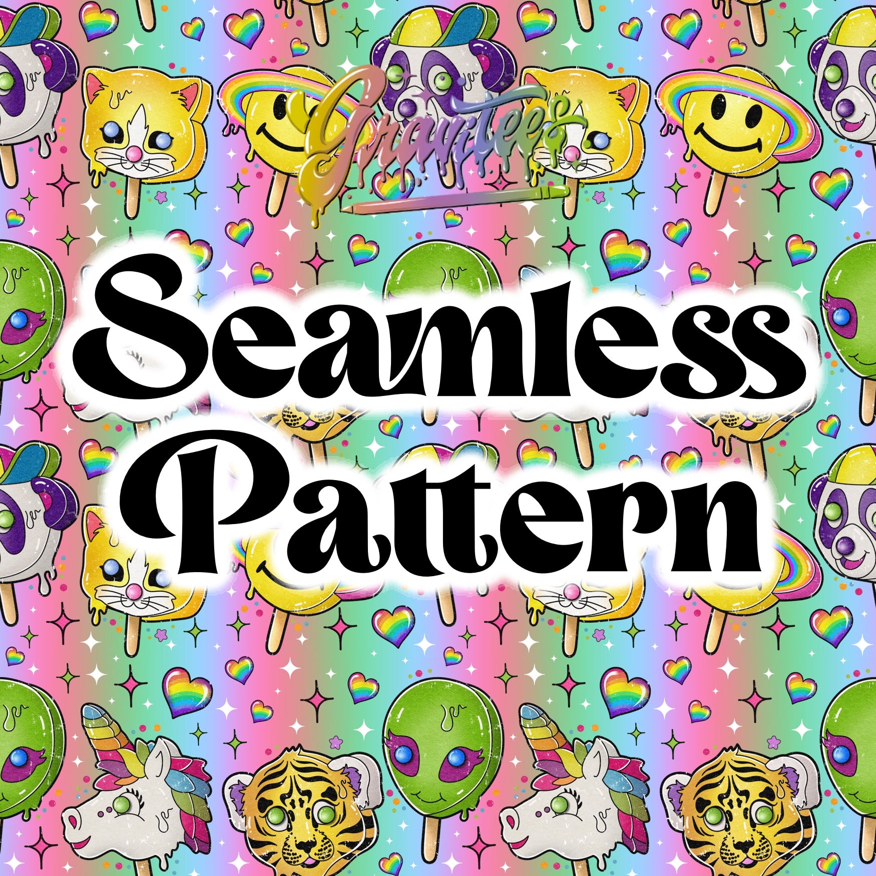Retro 90’s Animal Ice Creams Seamless Png Clipart, Animal Clipart for DTF or Shirt Printing, PNG Only!