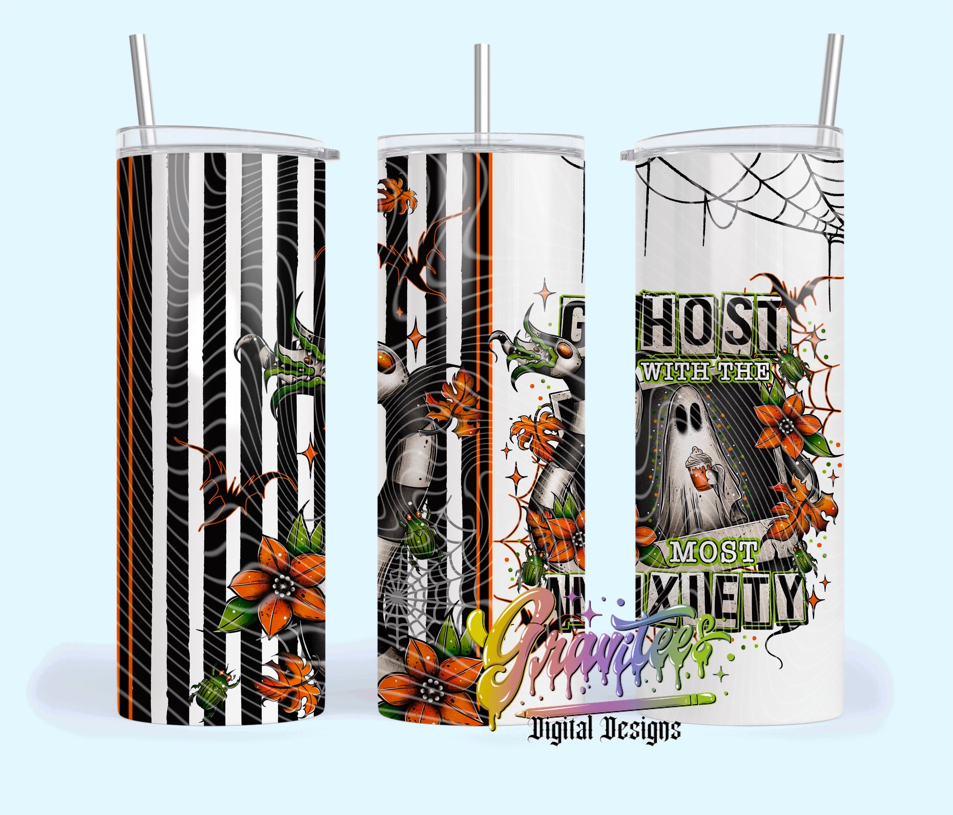 Anxiety Ghost 20oz Tumbler Template Design PNG, Fall Design for UVDTF or Sublimation Printing PNG Only!