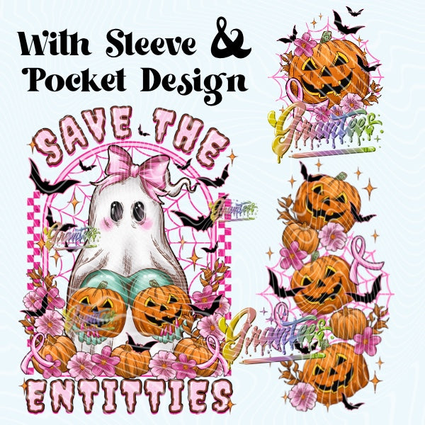 Save The Entitties With Sleeve & Pocket Design PNG, Breast Cancer Design for DTF or Shirt Printing PNG Only