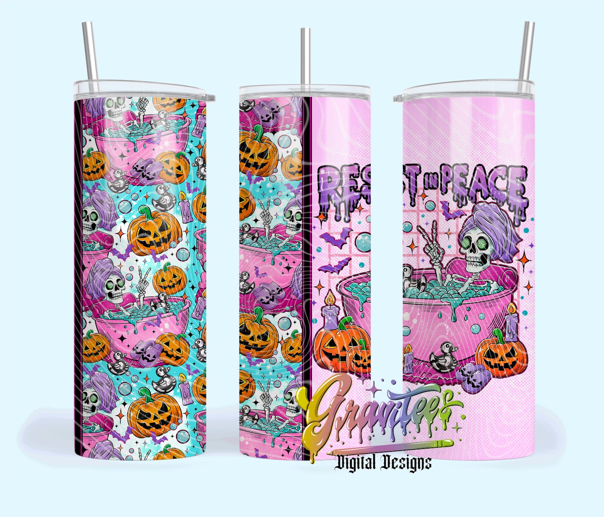 Rest In Peace 20oz Skinny Template PNG, Halloween Skeleton Clipart for UVDTF or Sublimation Printing PNG Only!