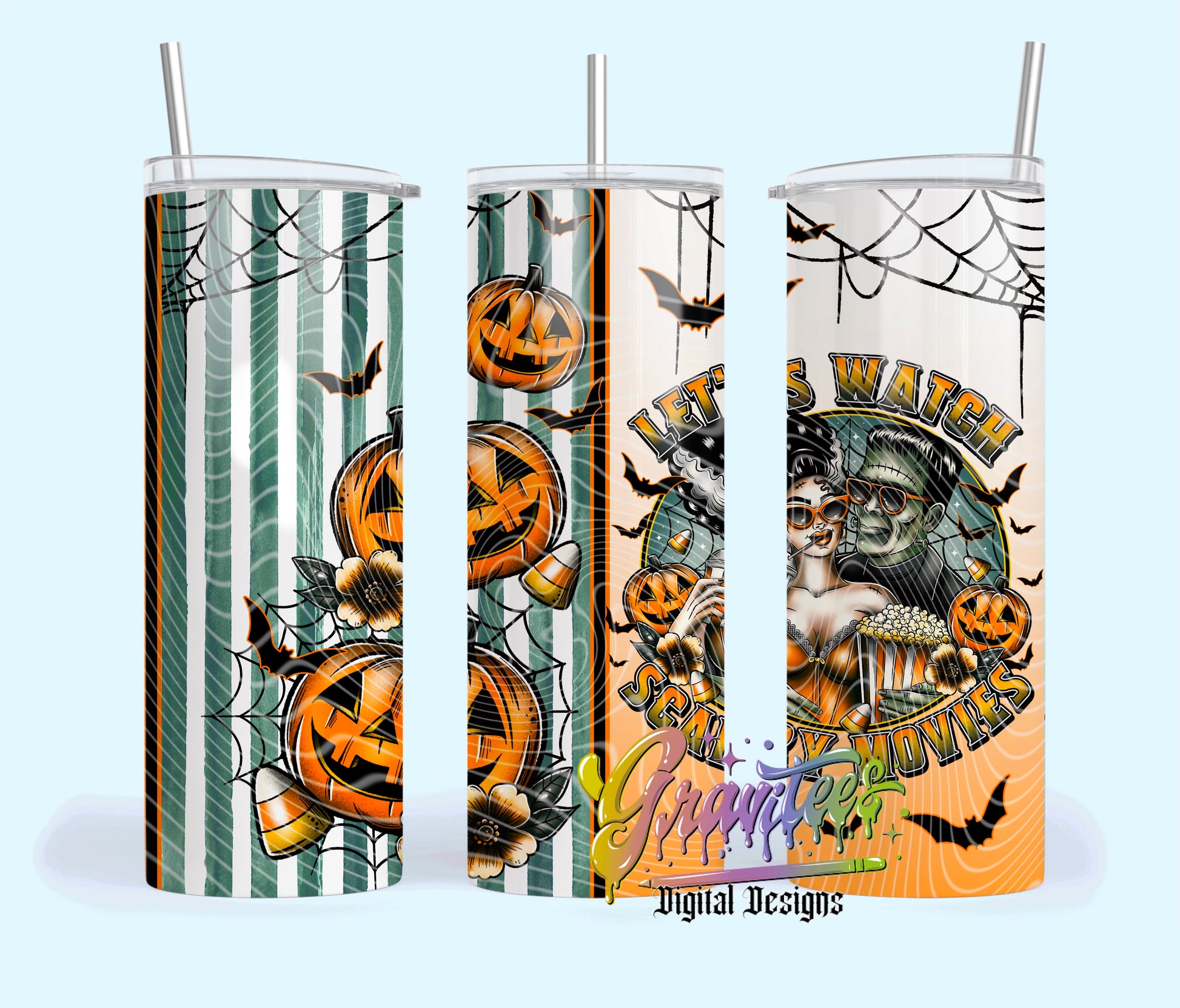 Let’s Watch Scary Movies 20oz Tumbler Template Design PNG, Fall Design for UVDTF or Sublimation Printing PNG Only!